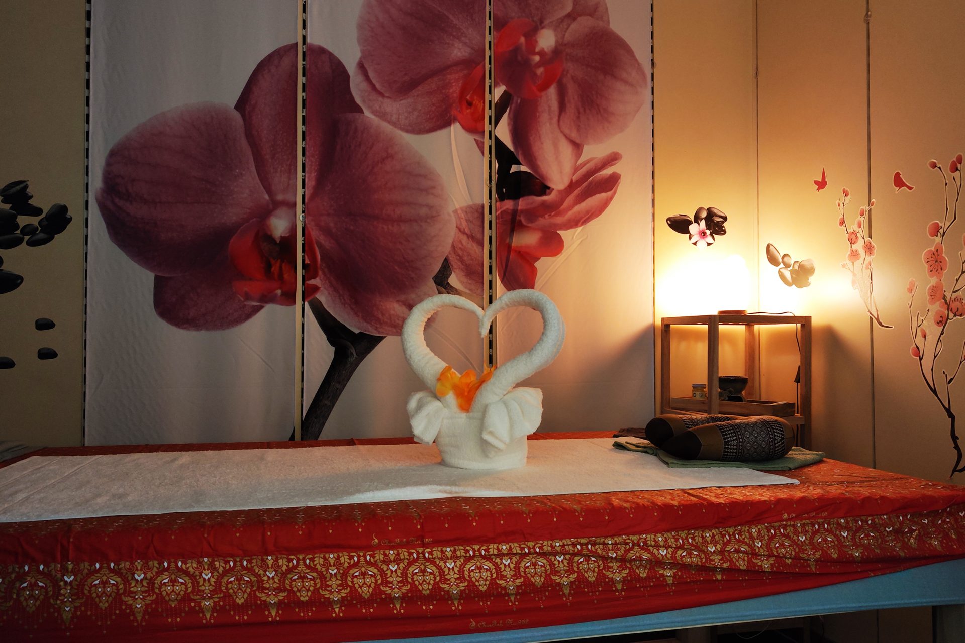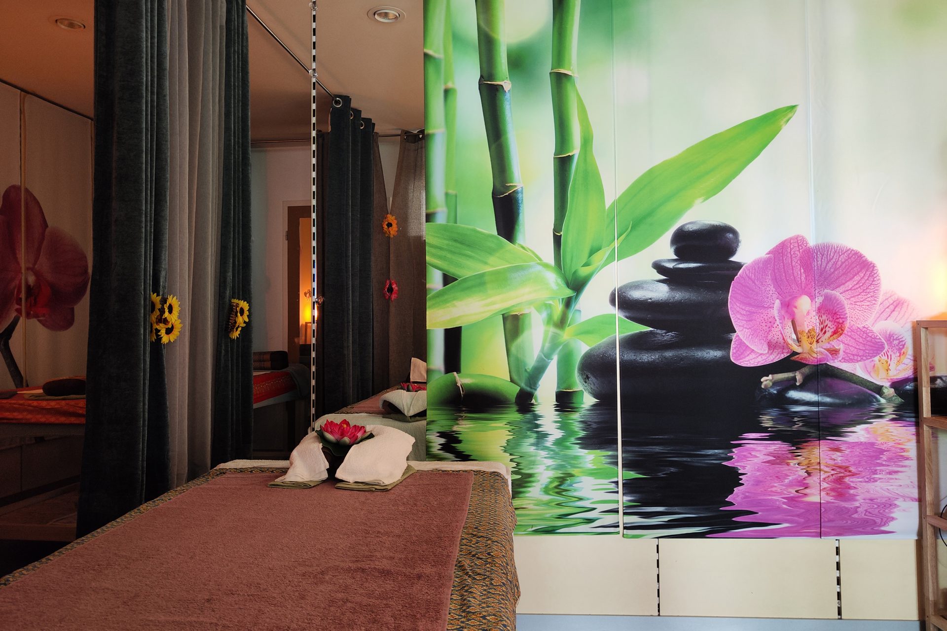 Die thailändische Massage ist mehr als nur eine Wellness-Behandlung – sie ist eine Kunst, die Körper und Geist gleichermaßen anspricht und ganzheitlich wirkt. Durch gezielten Druck, Dehnungen und sanfte Berührungen werden Energiebahnen stimuliert, Verspannungen gelöst und die Durchblutung gefördert, was eine tiefe Entspannung ermöglicht. Dies trägt nicht nur zur physischen Entspannung bei, sondern fördert auch das emotionale Wohlbefinden und hilft, innere Blockaden zu lösen. Unsere Massagen sind darauf ausgerichtet, Sie tief zu entspannen, Ihren Energiefluss zu harmonisieren und Ihnen ein Gefühl von innerer Ruhe und Ausgeglichenheit zu schenken, das lange anhält.